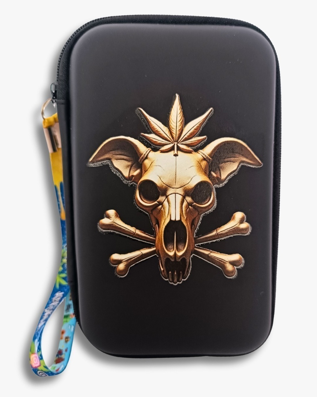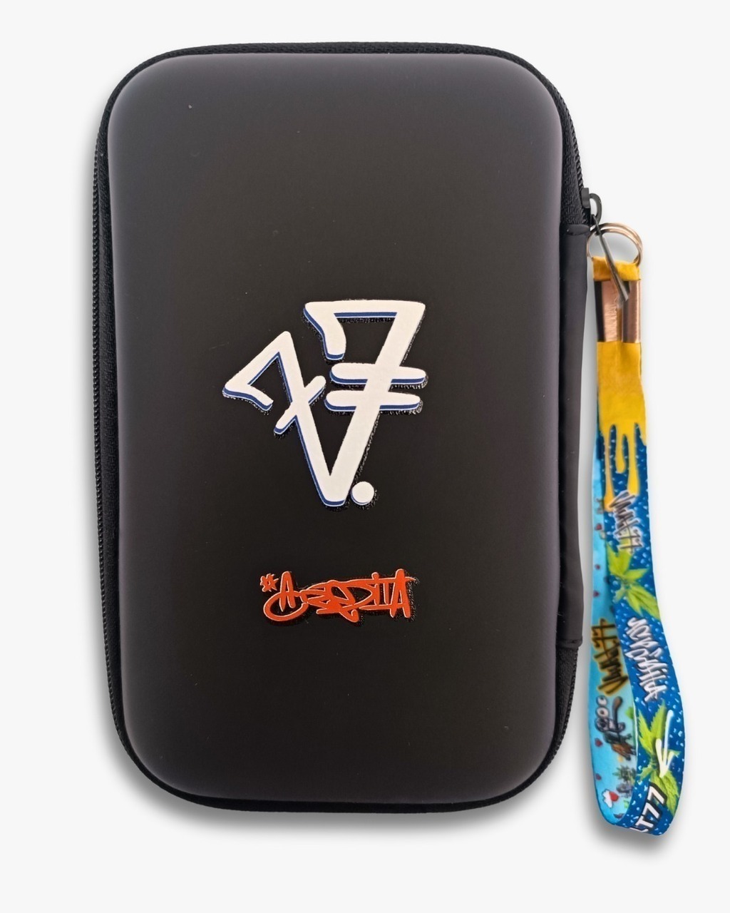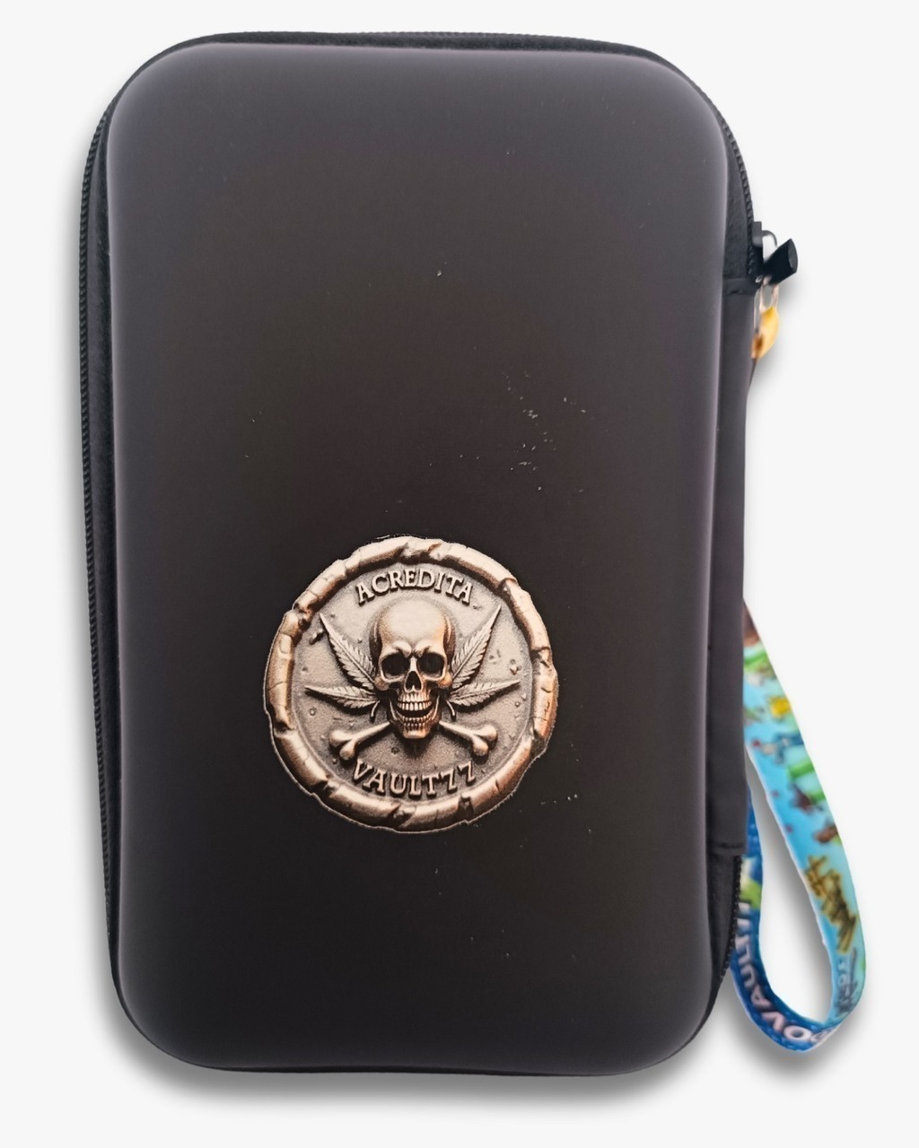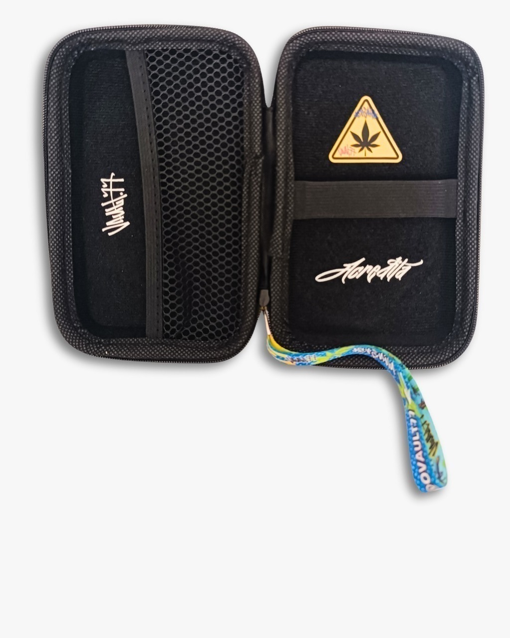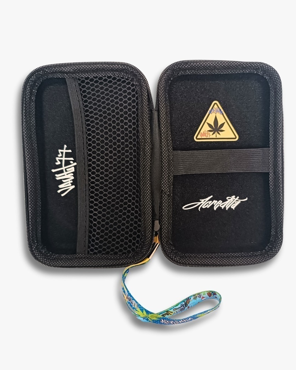 Ele possui estampas e divisões internas e vem com um cordão pequeno personalizado que facilita o transporte, para que você não perca o que importa, se é que você me entende.